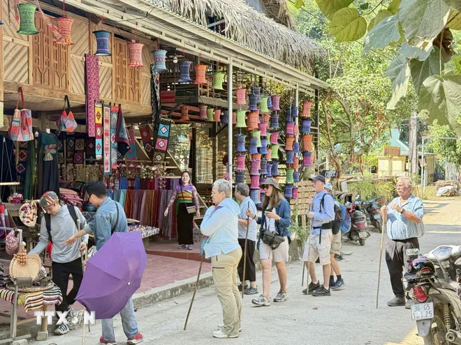 Làng nghề dệt thổ cẩm thôn Lặn Ngoài (xã Pù Luông, tỉnh Thanh Hóa) trở thành điểm đến hấp dẫn khách du lịch quốc tế. (Ảnh: Hoa Mai/TTXVN)